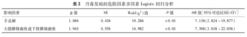 | 手足癣 | 1.884 | 0.426 | 19.286 | <0.01 | 7.136(2.824~19.877) |
