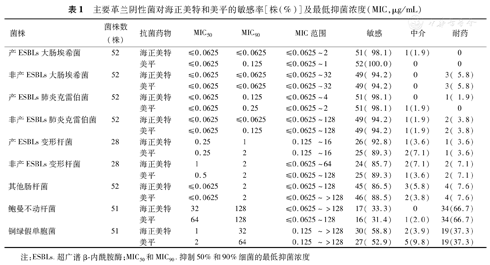 注:ESBLs.超广谱β-内酰胺酶;MIC50和MIC90.抑制50%和90%细菌的最低抑菌浓度
