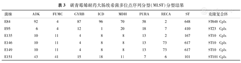 碳青霉烯耐药大肠埃希菌多位点序列分型(MLST)分型结果