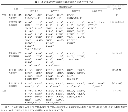 | 甲型 | 季节性H1N1流感病毒 | H274YH,N70SL,Q136KL,Y155HM | H274YL,H70SM,Q136KH,Y155HH | H274YH,Q136KH,Y155HH | - | [14] |
