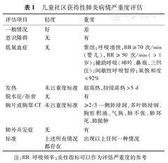 (2)病情严重度需根据年龄、临床和影像学表现等评估,见表1。