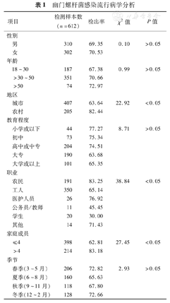 | 项目 | 检测样本数(n=612) | 检出率 | χ2值 | P值 | |