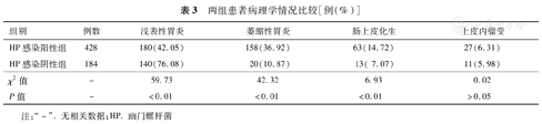| HP感染阳性组 | 428 | 180(42.05) | 158(36.92) | 63(14.72) | 27(6.31) |