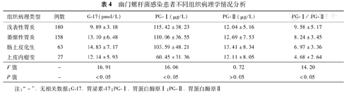 | 组织病理类型 | 例数 | G-17(pmol/L) | PG-Ⅰ(μg/L) | PG-Ⅱ(μg/L) | PG-Ⅰ/ PG-Ⅱ |
