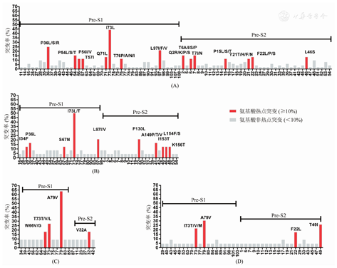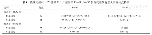 慢性无症状HBV携带者B、C基因型Pre-S1、Pre-S2蛋白氨基酸有意义突变位点特征