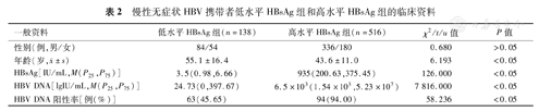 慢性无症状HBV携带者低水平HBsAg组和高水平HBsAg组的临床资料