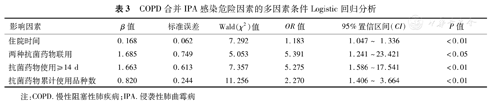 COPD合并IPA感染危险因素的多因素条件Logistic回归分析