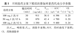 不同给药方案下模拟的替加环素药代动力学参数