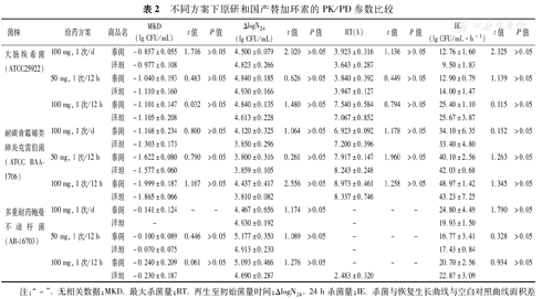 不同方案下原研和国产替加环素的PK/PD参数比较