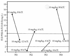 注:灰色阴影部分为利奈唑胺稳态Cmin目标设定范围(2.0~7.0 mg/L)