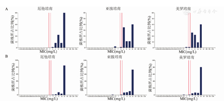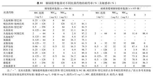 | MIC范围(mg/L) | MIC50(mg/L) | MIC90(mg/L) | R | S | MIC范围(mg/L) | MIC50(mg/L) | MIC90(mg/L) | R | S | |