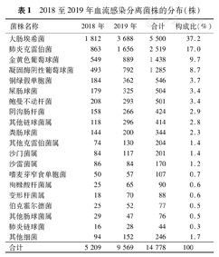 | 菌株名称 | 2018年 | 2019年 | 合计 | 构成比(%) |