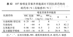 107株嗜麦芽窄食单胞菌对头孢他啶和左氧氟沙星的耐药率均低于10%,但对复方磺胺甲噁唑的耐药率为29.9%(表12)。