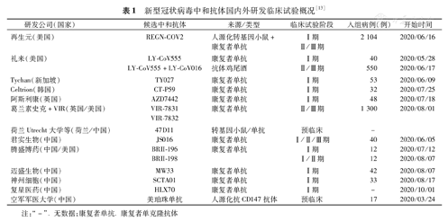 新型冠状病毒中和抗体国内外研发临床试验概况[13]