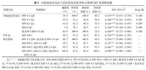 间接免疫荧光法与实时荧光定量PCR法检测EBV的诊断效能