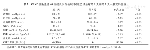 | CRKP阳性[例(%)] | 40(100) | 0 | 80.00 | <0.05 |