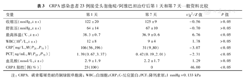 CRPA感染患者23例接受头孢他啶/阿维巴坦治疗后第1天和第7天一般资料比较
