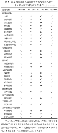 泛基因型直接抗病毒药物方案与特殊人群中常见联合用药间的相互作用[36]