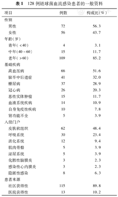 128例链球菌血流感染患者的一般资料