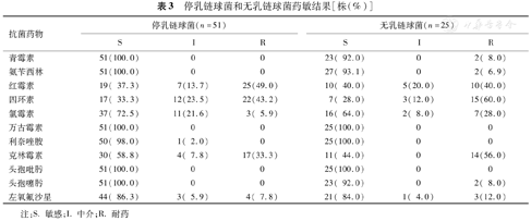 | 抗菌药物 | 停乳链球菌(n=51) | 无乳链球菌(n=25) | ||||