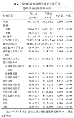 影响耐碳青霉烯类肺炎克雷伯菌感染预后的单因素分析