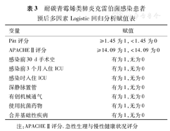 耐碳青霉烯类肺炎克雷伯菌感染患者预后多因素Logistic回归分析赋值表