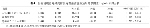 影响耐碳青霉烯类肺炎克雷伯菌感染预后的多因素Logistic回归分析