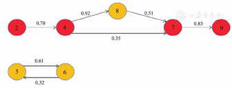 注:1~9指耐碳青霉烯类鲍曼不动杆菌感染患者,箭头上数字代表对应的传播概率,仅展示概率>0.20的传播链
