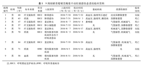 9例耐碳青霉烯类鲍曼不动杆菌感染患者的临床资料