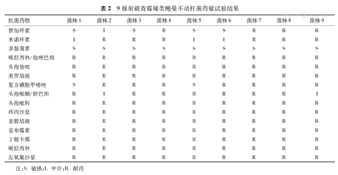 9株耐碳青霉烯类鲍曼不动杆菌药敏试验结果