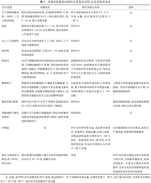 呼吸系统感染送检标本类型及采集、运送及保存条件