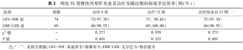 综上所述,基因1b型不伴或伴有肝硬化的CHC患者使用LDV/SOF或EBR/GZR抗病毒治疗的疗效及安全性均较好,且经济负担小,性价比高,但仍需继续随访患者并监测有无并发症的发生。