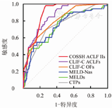 注:ACLF.慢加急性肝衰竭;HBV-ACLF.乙型肝炎病毒相关ACLF;COSSH ACLF IIs.中国重型乙型肝炎研究学组ACLF评分2.0;CLIF-C ACLFs.慢性肝衰竭联盟ACLF评分;CLIF-C OFs.慢性肝衰竭联盟脏器衰竭评分;MELDs.终末期肝病模型评分;MELD-Nas.MELD血清钠评分;CTPs.Child-Turcotte-Pugh评分