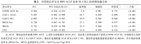 不同预后评分对HBV-ACLF患者28 d死亡的预测效能分析