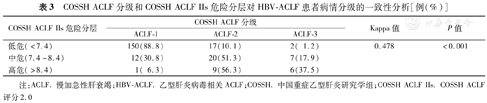 COSSH ACLF分级和COSSH ACLF IIs危险分层对HBV-ACLF患者病情分级的一致性分析[例(%)]