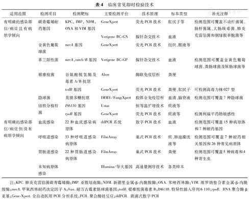 | 呼吸道感染 | 33种呼吸道感染病原体 | FilmArray | 巢式PCR技术 | 痰、肺泡灌洗液等 | 检测范围可覆盖7种耐药相关基因和26种常见病原体 | |