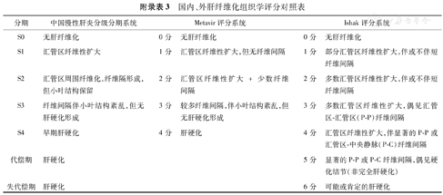 | S1 | 汇管区纤维性扩大 | 1分 | 汇管区纤维性扩大,但无纤维间隔 | 1分 | 部分汇管区纤维性扩大,伴或不伴短纤维间隔 |