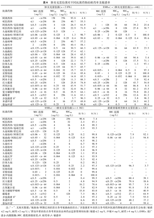 | 头孢吡肟 | ≤0.06~128 | 0.064 | 16 | 10.3 | 85.8 | ≤0.06~64 | 3.4 | 88.1 | ≤0.06~128 | 0.064 | 16 | 11.2 | 81.5 |