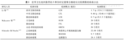 世界卫生组织推荐的3种实时定量聚合酶链反应检测猴痘病毒方法