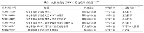 抗猴痘病毒(MPXV)药物临床试验统计[59]