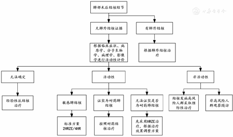 建议8:对所有肺结节术后诊断为活动性结核的患者需行耐药性评估,敏感结核采用2HRZE/4HR标准抗结核方案,明确为耐药结核采用耐药结核治疗方案,无法证实是否耐药时先采用HRZE治疗,后根据治疗效果调整方案。
