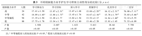 不同创新能力水平护生学习积极主动性得分的比较(分,