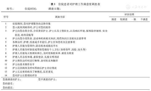 研究"住院患者对护理工作满意度调查表"在优质护理服务中的应用方法及效果。