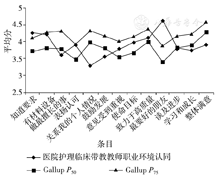 提升整体认同:护理临床实践教师职业环境认同整体大均值高于50百分位,而低于75百分位。随着整体护理模式的不断普及及推广,护理方式由常规护理向科技含量较高的专科护理扩容,护理范围由临床治疗型向医疗、预防、保健、康复综合性拓展,护理临床实践带教教师即是教师也是护士,通过护理绩效不断改革,护士的待遇、职称晋升不断改善,以期整体认同能有所提高。