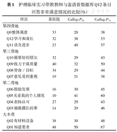 护理临床实习带教教师与盖洛普数据库Q12条目回答非常满意情况的比较(%)