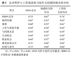 急诊科护士工作满意度与组织支持感呈正相关(P<0.01),见表3。