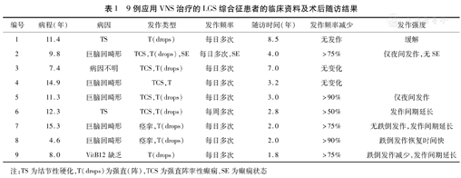 9例应用VNS治疗的LGS综合征患者的临床资料及术后随访结果