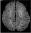 | 6.病程第3-9天头部MRI DWI见皮质下白质高信号病灶,T2和FLAIR加权像可显示沿U形纤维分布的高信号 |