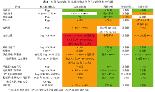 可能与新型口服抗凝药物之间存在药物间相互作用