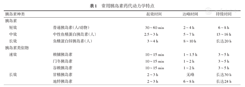 常用胰岛素药代动力学特点